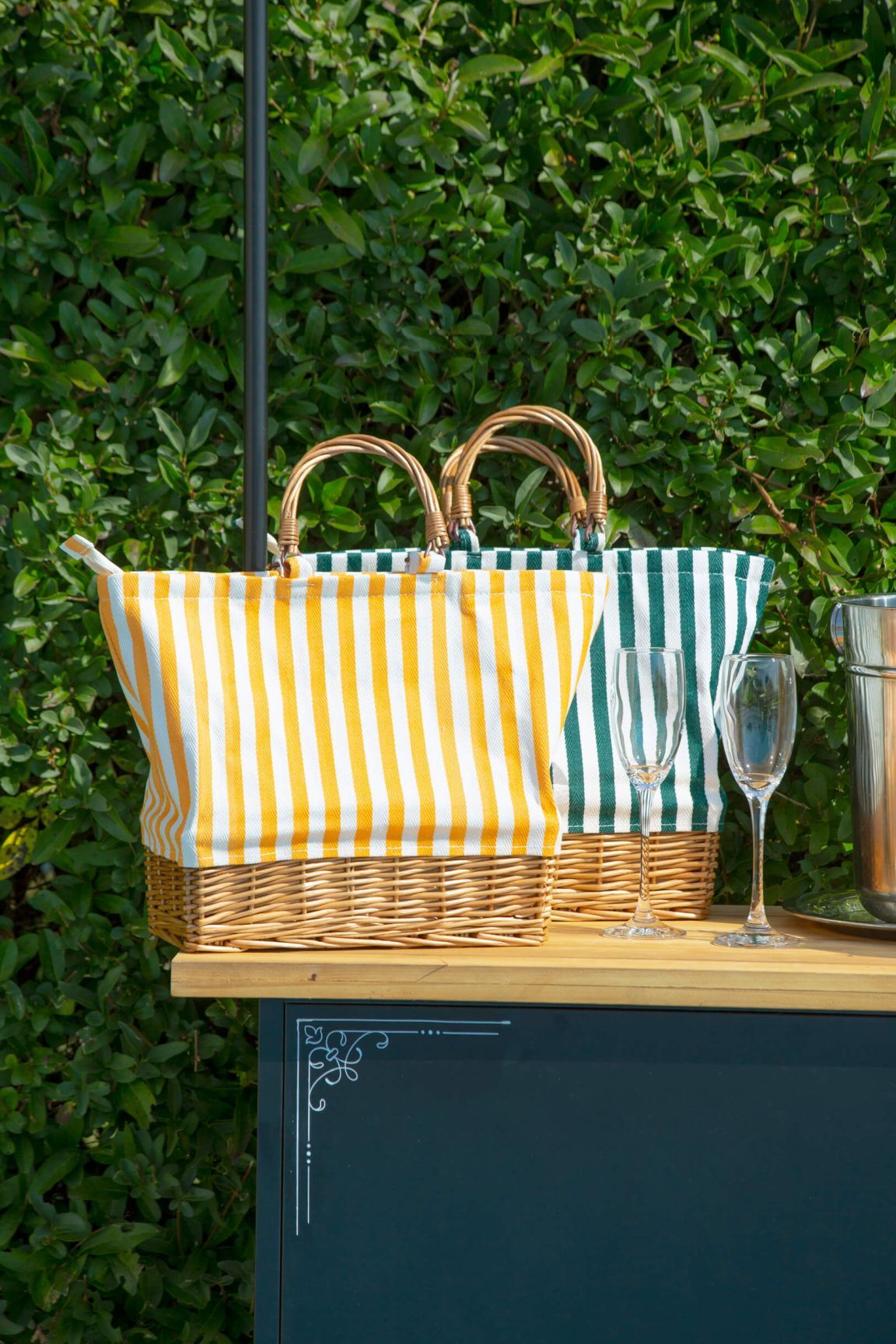 RECTANGULAR WILLOW BASE INSULATED PICNIC BAG YELLOW