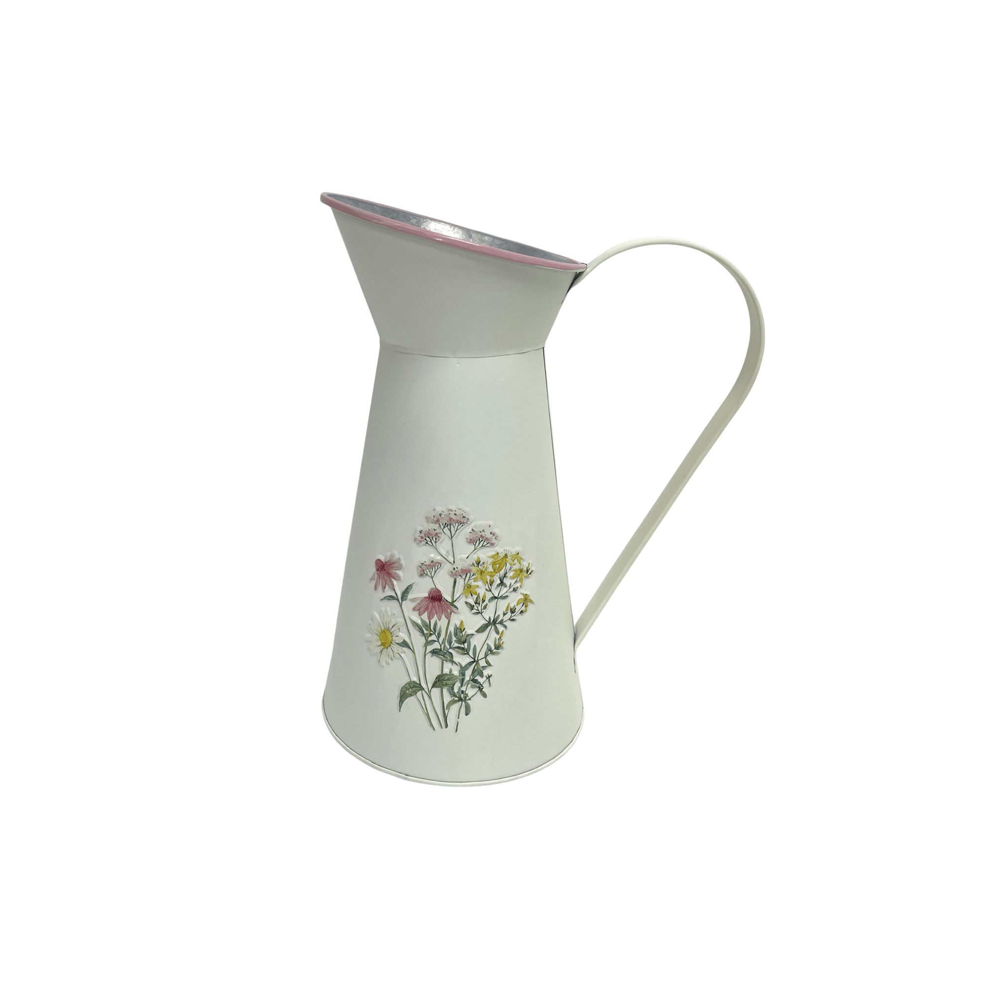 TALL METAL PITCHER WITH FLORAL EMBOSS DESIGN