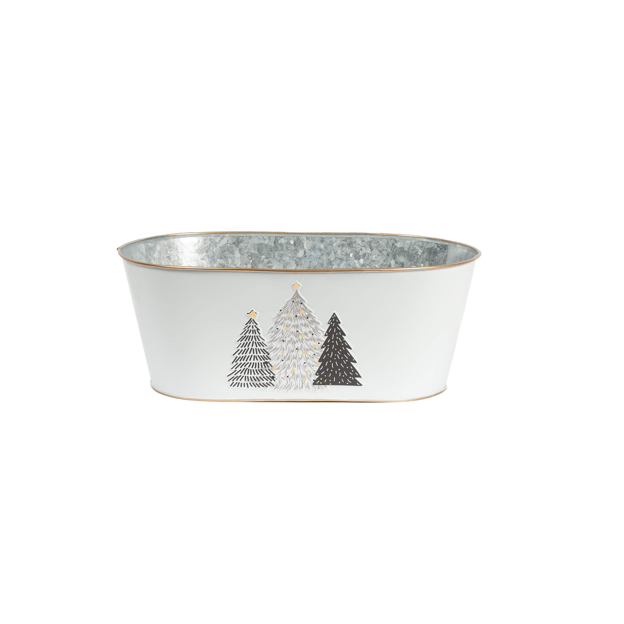 WHITE OVAL METAL TREE EMBOSS DESIGN